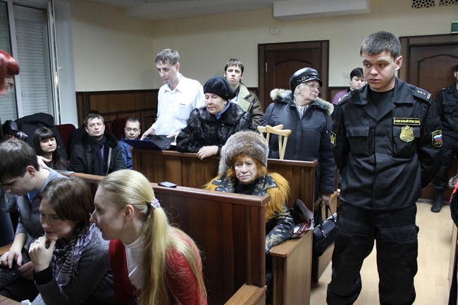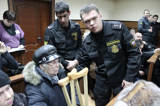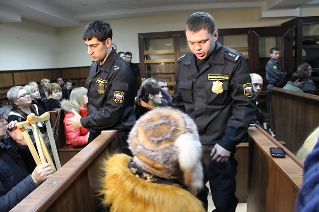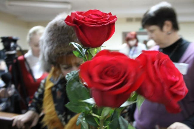 Однако сделать это судебные приставы так и не смогли, поскольку крикунами оказались пожилые женщины, пришедшие в зал на костылях, которые наотрез отказались вставать и покидать зал. Стоит отметить, что одна из них пришла на процесс с цветами, которые пыталась передать Лысенко.