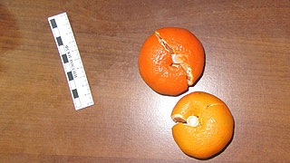 Как сообщает пресс-служба УФСИН, при досмотре одной из продуктовых передач в мандаринах оперативники нашли две пластиковые капсулы. В ней был порошок белого цвета. В каждой капсуле находилось по 0,5 г порошка.