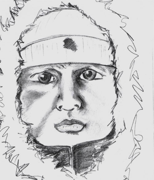 Согласно составленному фотороботу, на вид нападавшему 35-37 лет, рост 162-165 см, среднего телосложения, лицо круглое. Он был одет в пуховик темного цвета (синего или болотного цвета), на капюшоне мех рыжего цвета, черные джинсы, черные ботинки, шапку вязаную темного цвета с чередующимися бело-серо-черного цветов.