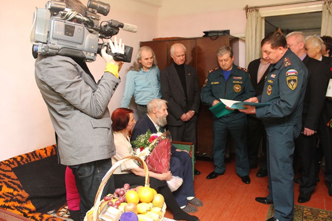 Приятной неожиданностью для ветерана стал звонок главы МЧС России Владимира Пучкова. По громкой связи Владимир Андреевич от себя лично и от всей системы МЧС России поздравил ветерана-долгожителя с днем рождения, пожелал ему прежде всего здоровья и благополучия.