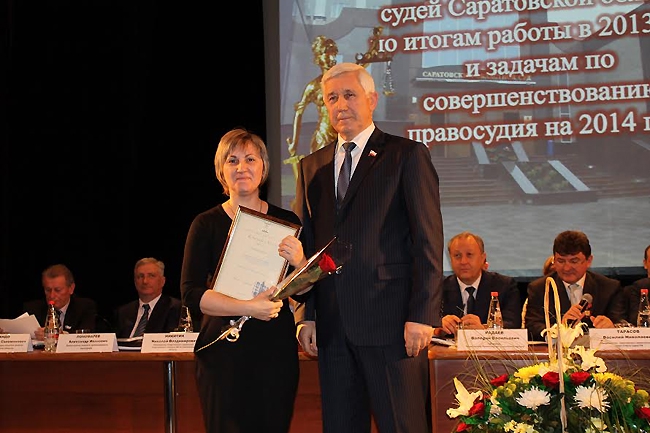 За хорошую работу в прошлом году был поощрен зампред Саратовского областного суда Олег Ляпин и главный бухгалтер Людмила Аникина, которых наградили аналогичным знаком второй степени.
