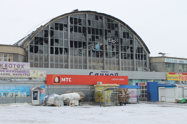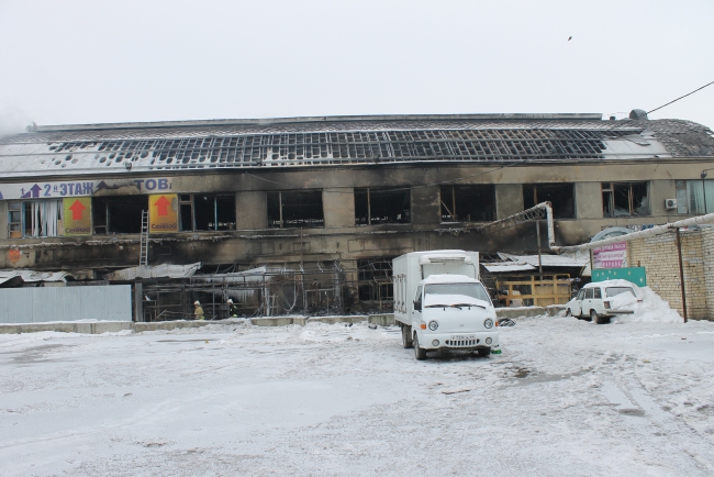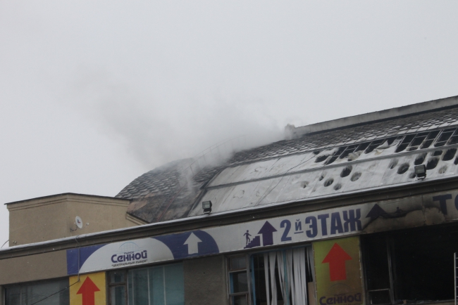 Напомним, По сообщению ГУ МЧС, в 18.58 произошло загорание торговой палатки около здания Сенного рынка на улице Большая Горная (пересечение с Танкистов). За считанные минуты огонь с павильонов перешел на соседнее здание. Потушить пожар, охвативший практически все здание удалось около 23.00. На месте ЧП работало 26 единиц техники, 86 человек личного состава.