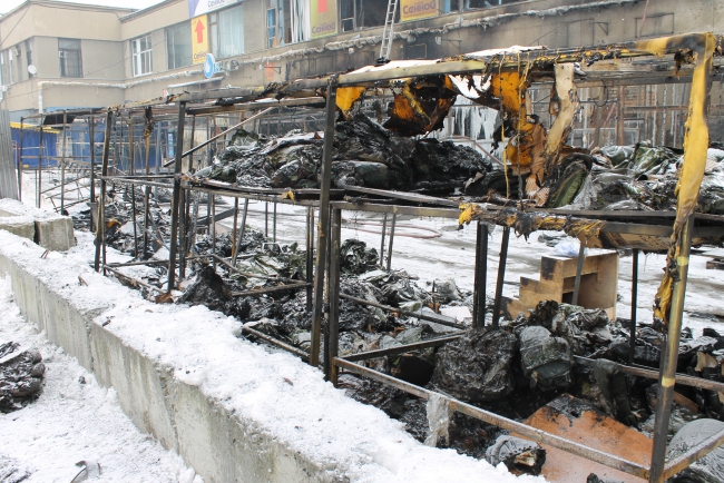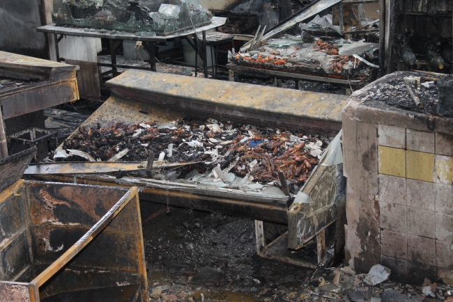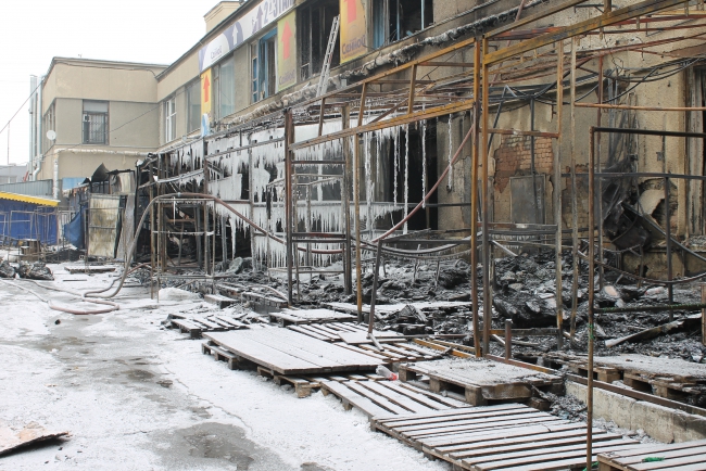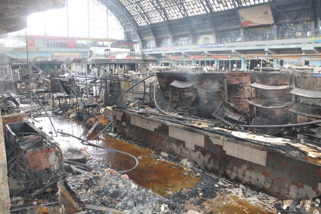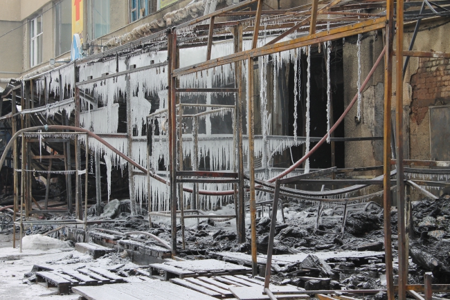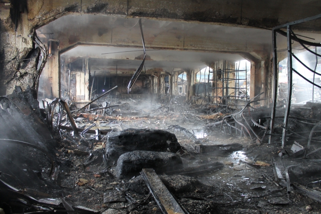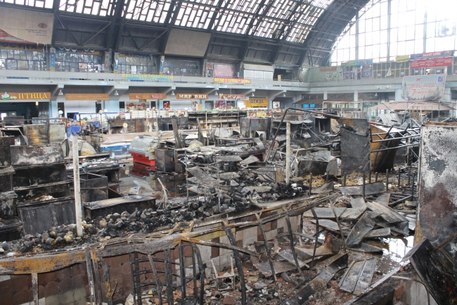 Сгорел Сенной рынок. Пожарные обследуют завалы