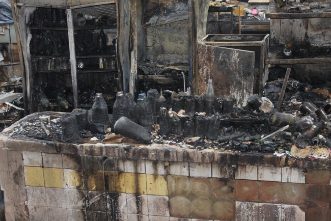 Корреспонденту «Четвертой власти» удалось попасть внутрь здания. Наиболее обгорела сторона, которая ближе к улице Танкистов. Внутри рынка остались ларьки, практически нетронутые огнем, однако большинство торговых мест изуродованы.