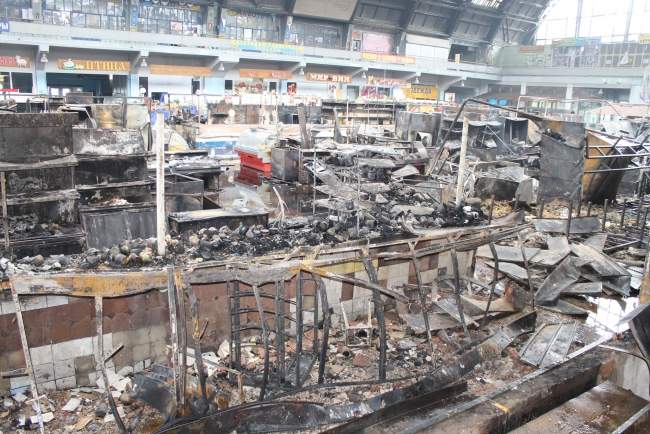 Собственников торговых точек уже начали пускать внутрь объекта, чтобы они могли забрать уцелевший товар. Территория вокруг рынка остается оцепленной.