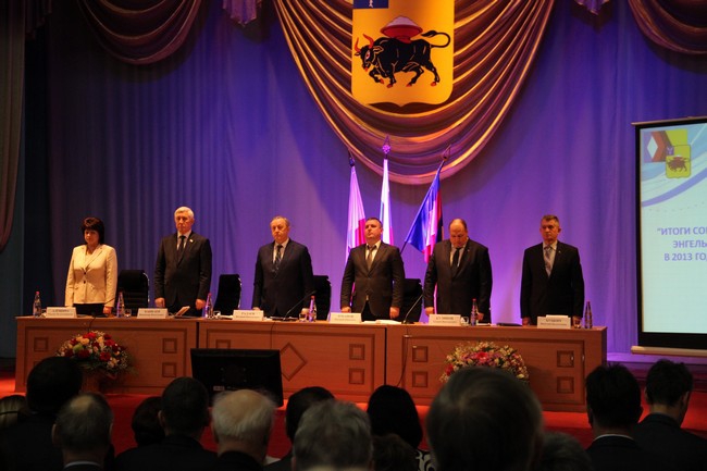 В начале мероприятия собравшимся показали фильм о самых главных событиях Энгельса за 2013 год. После этого слово взял глава администрации Энгельсского муниципального района Андрей Куликов. В своей речи он заявил о падении промышленного производства в первом полугодии прошлого года. По итогам года индекс промышленного производства составил 97%. «Внушительный спад произошел в производстве транспортных средств», - уточнил он. В числе прочих Куликов назвал производство вагонов. После этого глава администрации стал говорить о важности частного капитала для самочувствия экономики. В качестве примера привел ООО «Бош отопительные системы» концерна «Bosch». По его словам, общий объем инвестиций этой компании составил 23 млн евро. Ситуацию в строительной отрасли он назвал стабильной.
