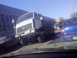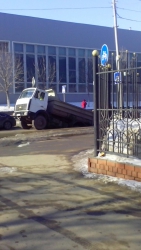 Сегодня рядом с «Детским парком» в центре Саратова под землю провалилась часть самосвала «МАЗ». Как сообщают очевидцы, это произошло посреди проезжей части на улице Рабочей между Астраханской и Пугачевской.
