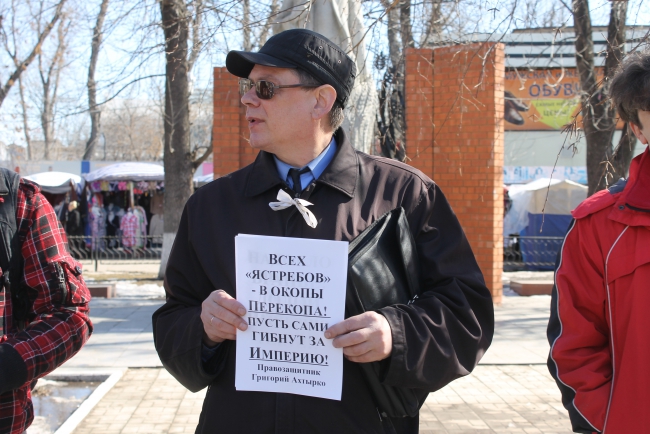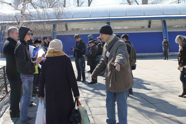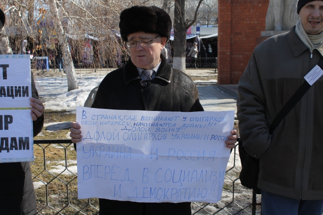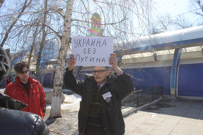 Возле горстки активистов, пытавшихся объяснить, что Крым России невыгоден экономически, а также то, что от нашей страны теперь отвернется международное сообщество, собралась более внушительная по численности группа людей, в основном старшего возраста, явно раздраженных и возмущенных. Ответом лозунгам стали обвинения в пособничестве Западу со стороны «фашистов» и «пятой колонны».