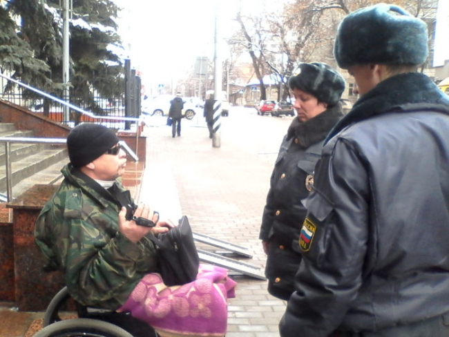 Напомним, что инвалид пытается привлечь к уголовной ответственности сотрудников полиции, которые якобы избили его в июне прошлого года при попытке пикетирования здания ГУ МВД по Саратовской области. Та его акция была посвящена взрывам на военном полигоне у Поповки, от которых страдает его дом.
