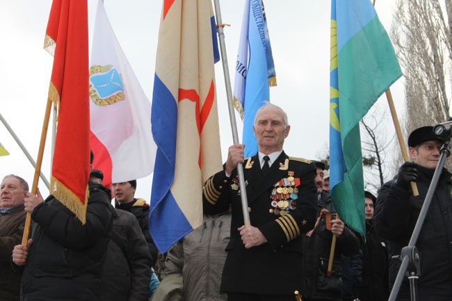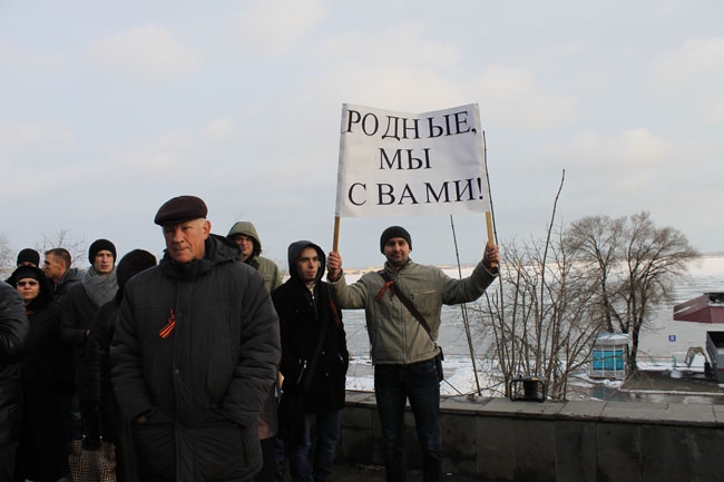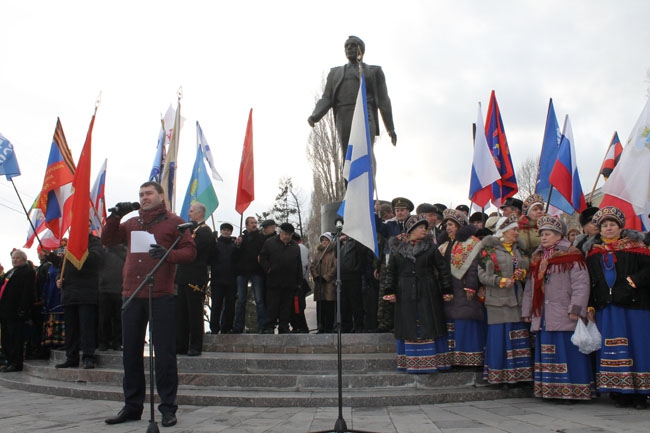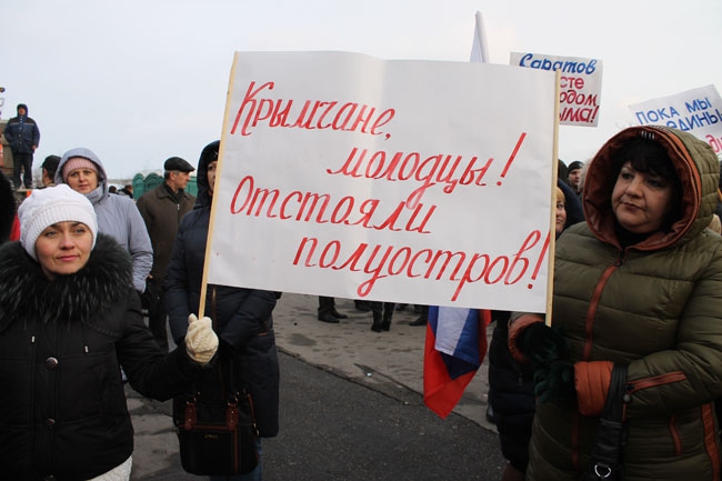 «Братья, земляки. Буквально час назад я связывался со своей сестрой в Симферополе. Она плачет, и рядом плачут трое ее детей. Потому что до такой степени они это знали. Нам, постоянно живущим в мире, без 3 революций за 10 лет, этого не понять. Разрешите поклониться всем вам, здесь стоящим, и всем тем, кто приносил гуманитарную помощь Крыму. Президент в очередной раз доказал, что он настоящий мужчина. Что он имеет такую железную волю, которую не согнуть никаким нашим западным «друзьям» и «партнерам». Огромное спасибо ему за это, что он нас не подвел. И что он показал, что такое наша страна, в которой мы живем», - сказал глава саратовского городского отделения общественной организации «Боевое братство» Анатолий Шостак.