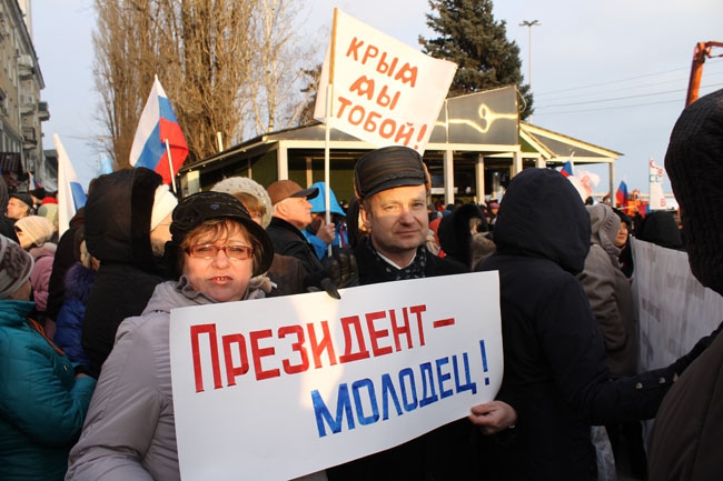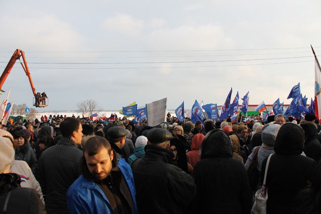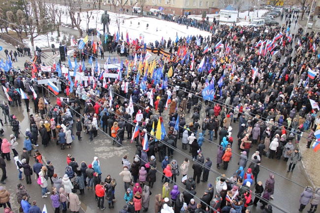 Стоит отметить, что митинг вышел кратковременным и закончился уже в 18.30. Тем не менее, на лицах людей была видна неподдельная радость, вызванная воссоединением Крыма и России. Люди поздравляли друг друга со случившимся и называли сегодняшнее подписание договора о вхождении полуострова в состав РФ праздником.