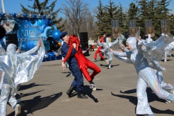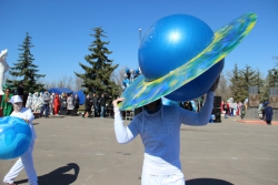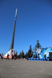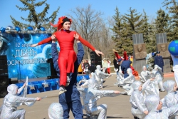 После него с поздравительной речью выступил другой гость, почетный академик Российской академии космонавтики Сергей Нефедов. Помимо речей, возле стелы также прошло театрализованная постановка на космическую тематику, танцы и возложение цветов.