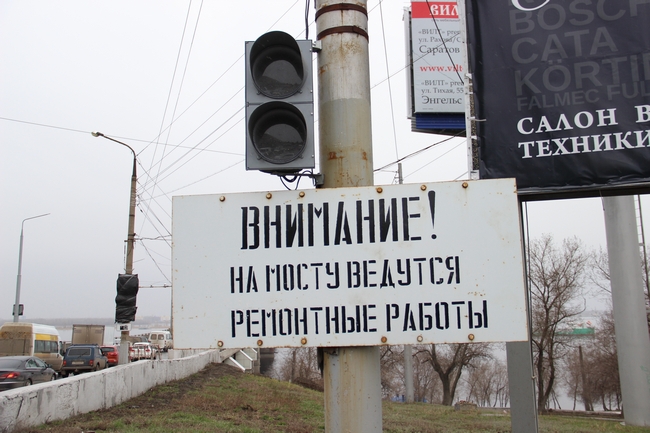 Между тем, в эти минуты на подъезде к старому мосту со стороны Саратова наблюдается крупный затор, который начинается от перекрестков Московской/Чернышевского, а также Московской/Набережной Космонавтов. На мосту через Глебучев овраг уже расчехлены знаки, сообщающие водителям о направлении объездного пути. На самом мосту знаки затянуты в черный полиэтилен.