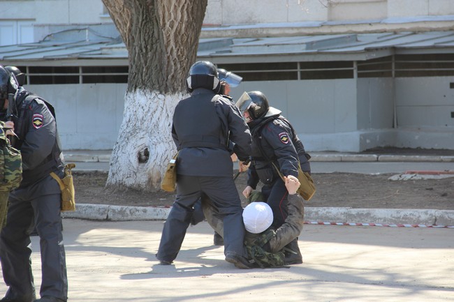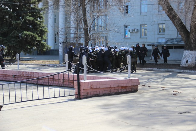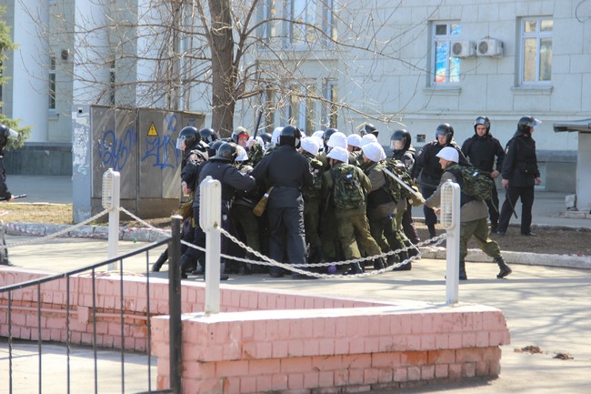 Около 13.20 от областной библиотеки стартовала группа «нарушителей», спровоцировавшая беспорядок. В это время сотрудники полиции начали штурм провокаторов, буквально положив несколько человек лицом на землю. После этого «задержанных» препровождали в автозаки.