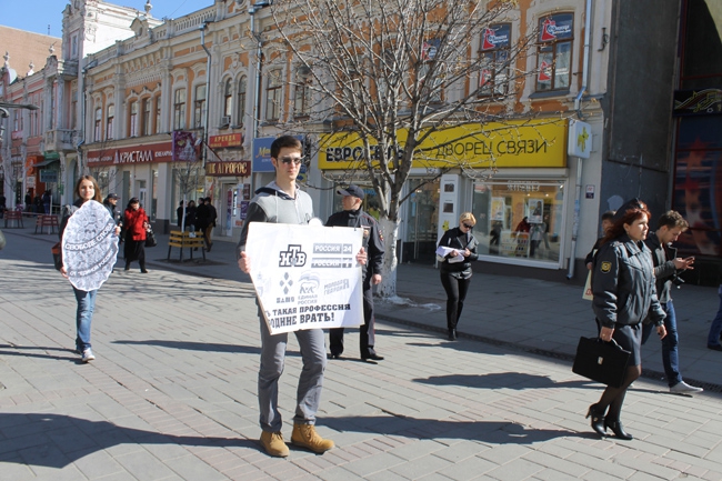 Акция стартовала в 16.00 у памятника Чернышевскому. Собравшиеся, всего около десятка человек, двинулись по проспекту Кирова в сторону Крытого рынка.