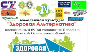 Управление по воспитательной работе СГТУ приглашает преподавателей, студентов Саратовского государственного технического университета имени Гагарина Ю.А., а также всех желающих принять участие в IV фестивале молодежной культуры «Здоровая Альтернатива», посвященном 69-ой годовщине Победы в Великой Отечественной войне. Фестиваль пройдет 6 мая 2014 года на территории СГТУ имени Гагарина Ю.А. с 10:00 до 17:00.