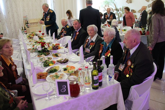 Сейчас для ветеранов в ресторане гостиницы «Словакия» организован банкет, идет концерт с песнями и танцами, звучат поздравления. Помимо очевидцев ВОВ и губернатора присутствуют председатель Саратовской областной думы Владимир Капкаев, главный федеральный инспектор региона Марина Алешина, вице-губернатор Денис Фадеев, председатель общественной палаты Саратовской области Александр Ландо, председатель регионального совета ветеранов (пенсионеров) войны, труда, Вооруженных сил и правоохранительных органов Таисия Якименко, министр социального развития региона Лариса Колязина, министр по молодежной политике, спорту и туризму области Наиля Бриленок и другие.