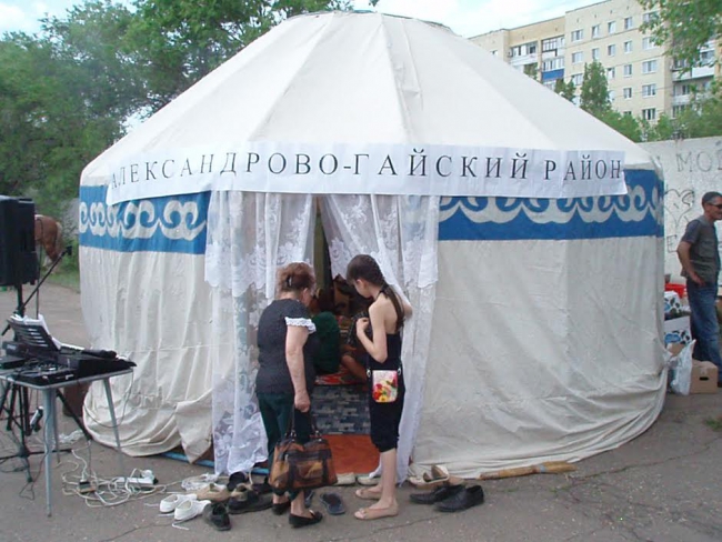Некоторые участники выставляли не только живой «товар», но и свои трофеи: медали, кубки. Делегация Александровогайского района установила самовар, разбила юрту, у входа которой организовала танцы. Не продавали, как раньше, на выставке выпечку областных производителей: хлеб, пироги. Зато шашлыка было достаточно.