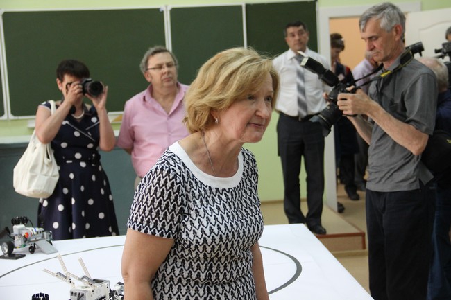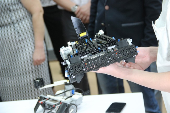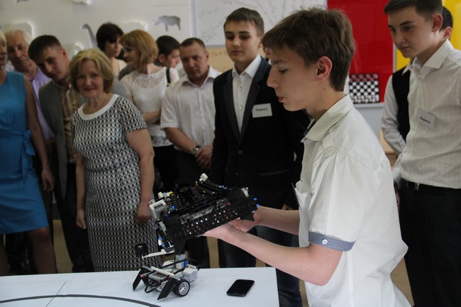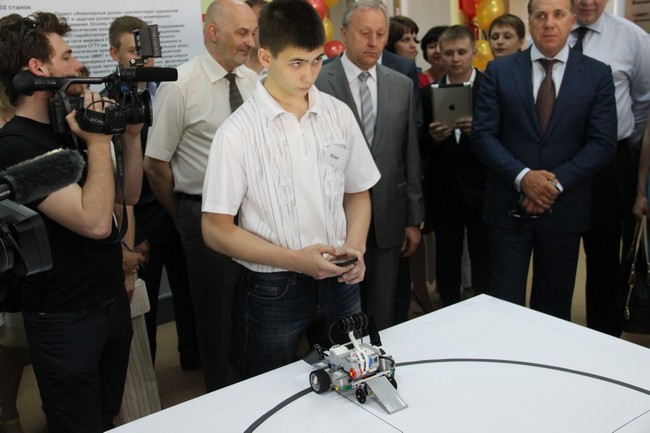 Глава региона прошел в класс, в центре которого был сооружен ринг для роботов с кругом внутри. Как пояснили Радаеву ученики школы, роботы из конструктора «Лего» оснащены двигателями и управляются с мобильных устройств с помощью специального приложения. Побеждает тот, кто вытолкнет противника за периметр кольца, кроме того, роботы оснащены клешнями и лопатками, чтобы наносить друг-другу повреждения и переворачивать соперников.
