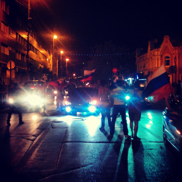 Тем временем, в Саратове праздничные гуляния продолжались всю ночь, поднимая гул на центральных улицах города. В частности, жители ездили на машинах и просто шли, держа в руках флаги с российским триколором. Выкрикивая различные лозунги, люди выходили прямо на проезжую часть, задерживая движение транспорта. Впрочем, большинство водителей поддерживали празднующих сигналами клаксонов.