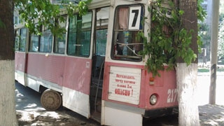 В Саратове трамвай сошел с рельсов и полностью перекрыл улицу