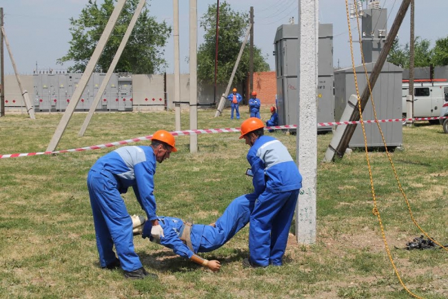 Участники конкурса также продемонстрировали своё мастерство в испытаниях, ставших уже традиционными - осмотре трансформаторной подстанции, устранении обрыва провода на воздушной линии, монтаже схемы коммерческого учета электроэнергии, тушении локального участка возгорания. Им предстояло быстро и грамотно справиться с заменой штыревого изолятора на воздушной линии 10 кВ., а также не более чем за 8 минут освободить пострадавшего от действия электрического тока на опоре воздушной линии 10 кВ и оказать ему первую помощь.