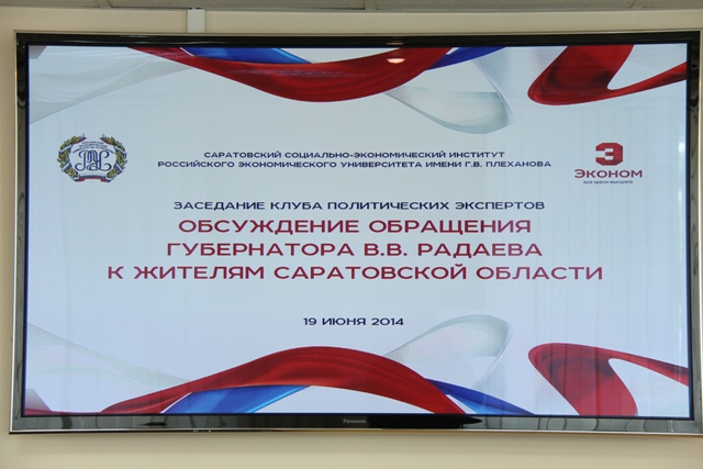 19 июня в Саратовском социально-экономическом институте РЭУ им. Г.В. Плеханова состоялось очередное заседание клуба политических экспертов, темой которого стало обсуждение обращения губернатора Валерия Радаева к жителям Саратовской области. Вел заседание директор ССЭИ РЭУ им. Г.В.Плеханова, д.и.н., профессор Сергей Наумов.