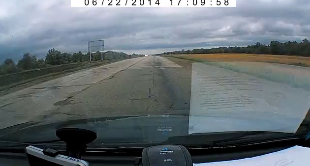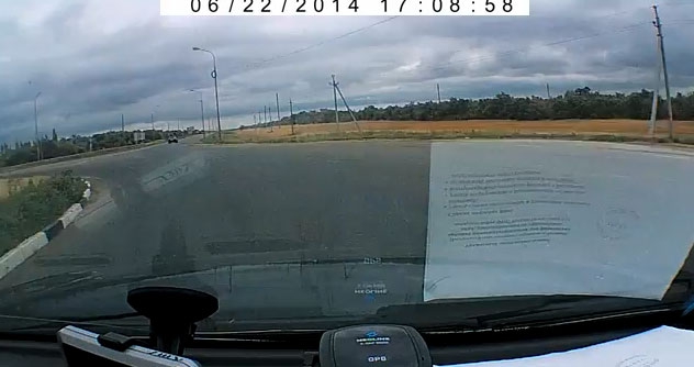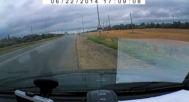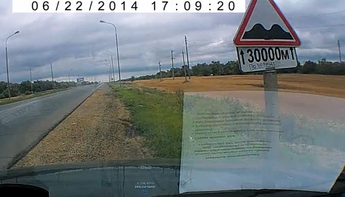Затем на видео видно, что автомобиль продолжает свой путь, и буквально через 30 секунд ровный асфальт на трассе заканчивается.
