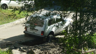 Несколько минут назад в Ленинском районе Саратова легковой автомобиль провалился в яму. Авария произошла на улице Школьная, по дороге к санаторию «Сокол». «Нива», сдавая задним ходом, угодила в канаву.