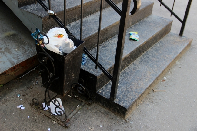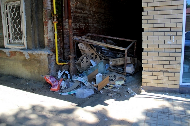 Переполненная урна была обнаружена также на перекрестке Большой Казачьей и Рахова. КГО свалены в кучи около контейнеров возле дома №65 и №80 по Кутякова. Кроме того, целая свалка вокруг контейнеров находится на пересечении Чапаева и Челюскинцев. Ниже по Чапаева, напротив дома №106 в арке устроен склад строительного мусора. Еще две точки скопления КГО располагаются на Зарубина, 39 и возле дома №49 по той же улице.