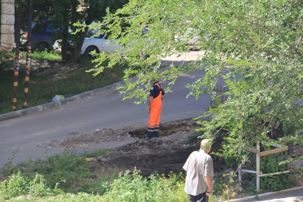 По рассказам очевидцев, около 10.00 на улицу Школьная подъехала машина и экскаватор. Из самосвала у ямы высыпали песок. Один рабочий лопатой сгреб его в канаву. Затем перед ямой установили ограждение. Местные жители предполагают, что коммунальные службы, видимо, не завершили ремонтные работы и еще вернутся к этому месту - поврежденная проезжая часть дороги не была заасфальтирована.