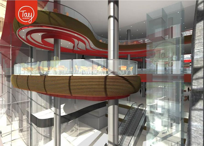 Архитектор проекта ТРЦ «Тау Галерея» - британское архитектурное бюро Dyer завершило дизайн внутренней концепции интерьеров моллов, зон кафе и ресторанов. Изюминкой проекта стал открытый фасад со стеклянным панорамным видом в зоне кафе и ресторанов. Напомним, здание ТРЦ появится на 3-й Дачной в Ленинском районе Саратова.