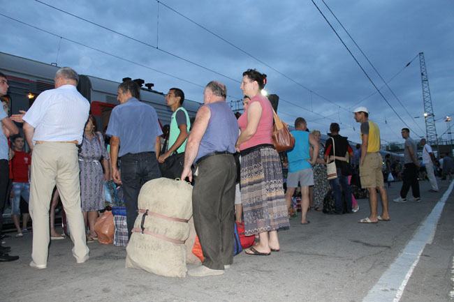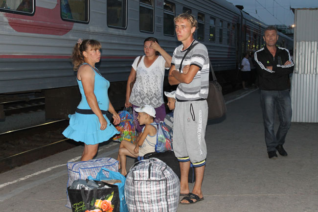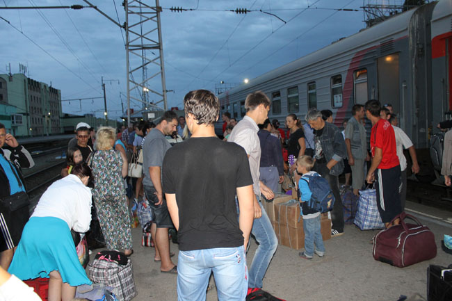 Поезд с беженцами прибыл около 5.30, и представители региональной власти заходили в каждый вагон, опасаясь, чтобы кто-то из беженцев, решивших перебраться в Саратов, не проехал дальше. Стоит отметить, что среди встречающих было несколько психологов, готовых оказать помощь украинцам, прибывшим из зоны вооруженного противостояния.