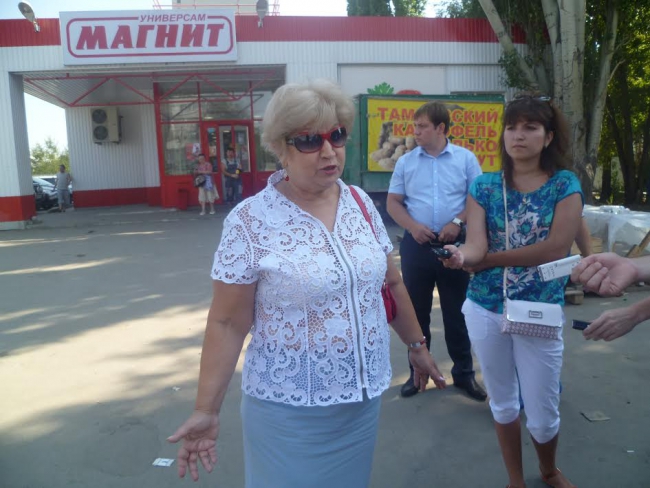 Первым пунктом посещения стал магазин «Магнит». Проверяющие обратились к директору, которая представилась Еленой. Она сообщила, что у них немного зарубежных товаров, в частности, фрукты, и добавила, «мы были бы рады, если бы продукция была наша». Также она сказала, что «резкого скачка цен не было, цены на месте. Но наши производители пока не торопятся».