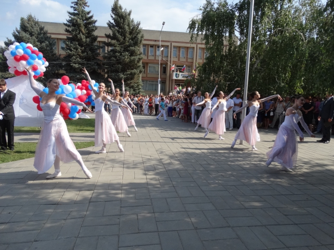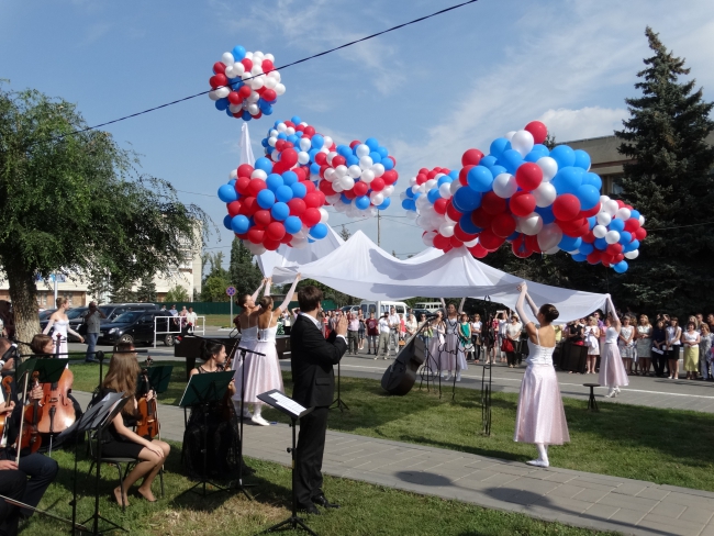 Перед официальной частью церемонии перед собравшимися выступили учебно-камерный оркестр ДШИ №1 и коллектив «Фантазия». Под аплодисменты зрителей участники танцевального коллектива сняли белое полотно со скульптурного ансамбля и в небо взмыли десятки воздушных шаров.