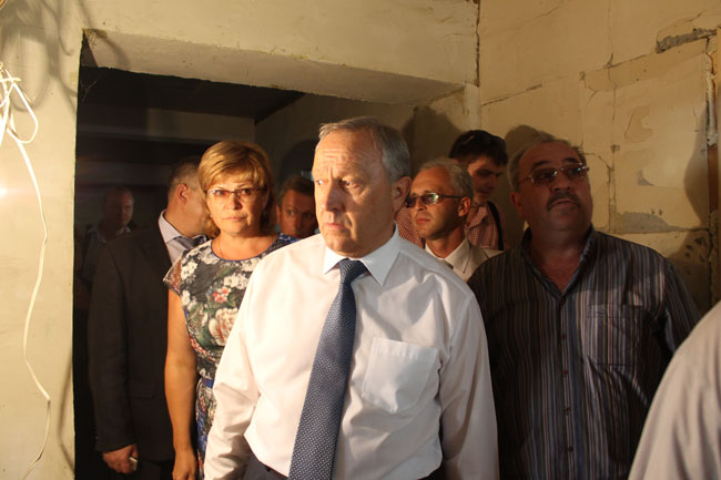 Перед встречей с погорельцами глава региона посетил бывшее общежитие строительного колледжа. В настоящее время здесь идут ремонтные работы. После приведения помещений в порядок в здании разместятся студенты колледжа искусств и артисты саратовских театров и творческих коллективов. Подрядчик сообщил Валерию Радаеву, что ремонт будет завершен к декабрю. Губернатор, осмотрев помещения, оценил работу и призвал сделать общежитие удобным и красивым, так как люди культуры очень чувствительны и по-особому относятся к красоте и очень хорошо в ней разбираются.