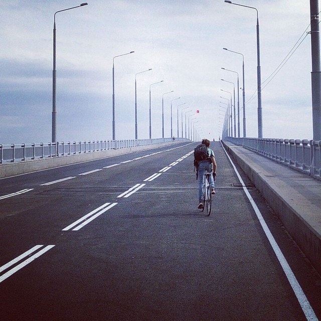 Жители региона в очередной раз выложили в социальные сети фотографии одной из достопримечательности – моста через Волгу. В частности, в группе «ВКонтакте» «Типичный Саратов» появились снимки пустого моста, лежащего по центру дороги молодого человека с гитарой, одиноко едущего велосипедиста и т.д. Среди них оказалась фотография с огромной лужей, образовавшейся возле спуска к пляжу после обильного дождя.