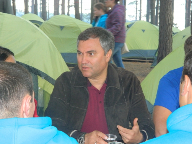 После встречи с Президентом для представителей Саратовской области была организована встреча с первым заместителем руководителя администрации президента РФ Вячеславом Володиным, в ходе которой аспиранты СГЮА приняли самое активное участие. Андрей Коровин поблагодарил Вячеслава Викторовича за постоянную поддержку Саратовской области, в том числе за участие в вопросе досрочного завершения ремонта моста «Саратов-Энгельс». Также Андреем были внесены предложения по развитию регионального туризма и представлены статистические данные, подтверждающие сокращение количества мест в аспирантуре. Анжела Вирт поинтересовалась у Вячеслава Викторовича о перспективах включения такого вида спортивного единоборства как самбо в число олимпийских видов спорта.