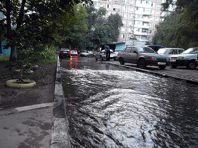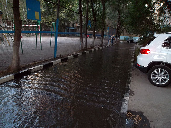 Как отмечают очевидцы, вода течет холодная, без запахов. На предоставленных газете снимках во дворе на Зарубина (в полутора кварталах от центра порыва) глубина потока воды составляет около 10 сантиметров.