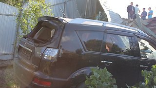 В Саратове водитель автомобиля «Митсубиси Аутлендер» не справился с управлением на крутом повороте и вылетел на обочину. ДТП произошло сегодня на пересечении улицы Тракторная и Большая Садовая. Внедорожник в результате неудачного маневра выбросило на бордюр, после чего он протаранил забор частного дома и упал на территорию двора.