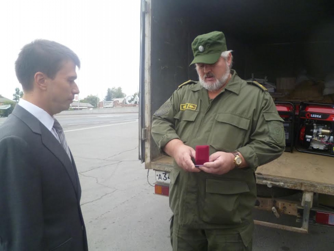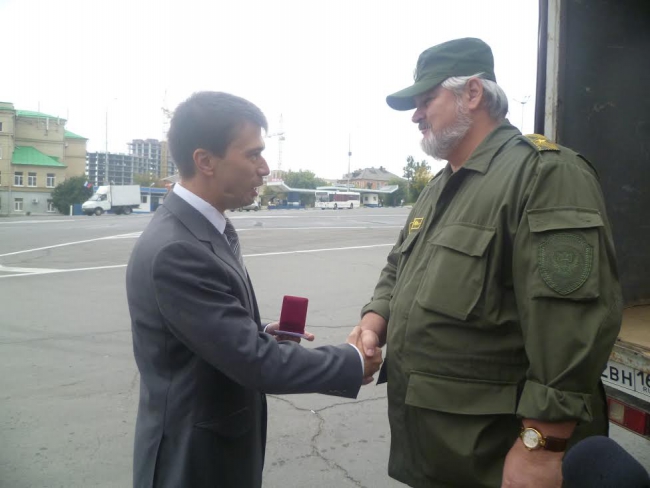 «Наше подразделение в Саратове сопровождает уже третью машину с гуманитарным грузом на Украину. Техника необходима для Луганска, для госпиталей, потому что там отключают свет. Сегодня мы наградили Владислава Малышева, потому что он оказывает нам активную поддержку, предоставляет материальную помощь для приобретения вещей, жизненно необходимых сейчас на Украине», - рассказал атаман Алексеев.