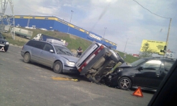 По словам очевидцев, возле поворота на магазин «Касторама» в районе Вольского тракта (у кольца на 6-м квартале) столкнулись «ВАЗ-2108», «Фольксваген» и «Тойота». При этом «восьмерка» опрокинулась на правый бок, а иномарки врезались передними частями с обеих сторон.