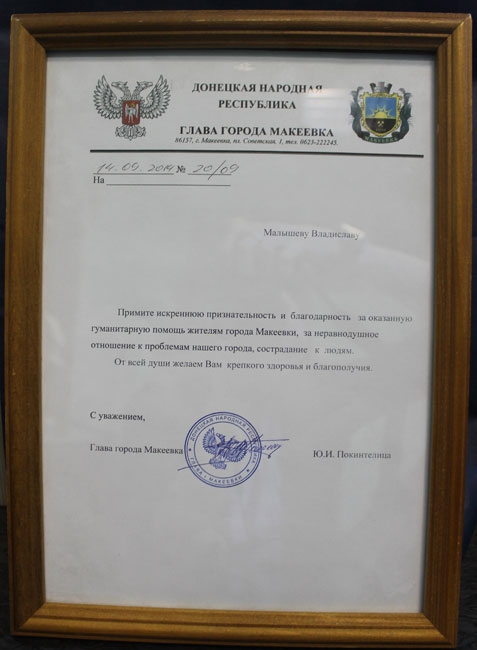 «Примите искреннюю признательность и благодарность за оказанную гуманитарную помощь жителям города Макеевки, за неравнодушное отношение к проблемам нашего города, сострадание к людям», - говорится в тексте письма.