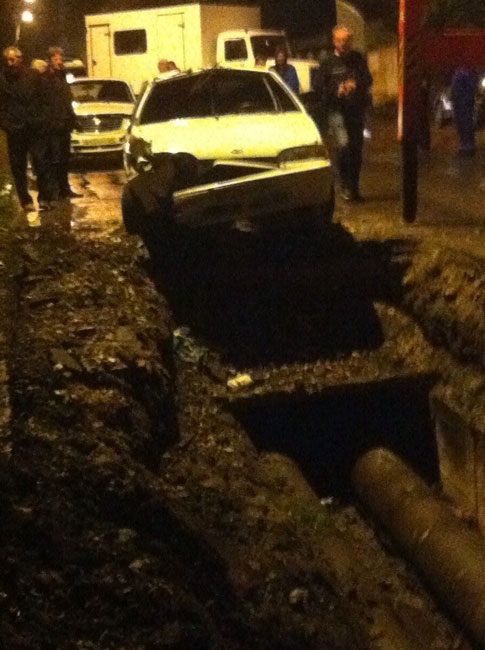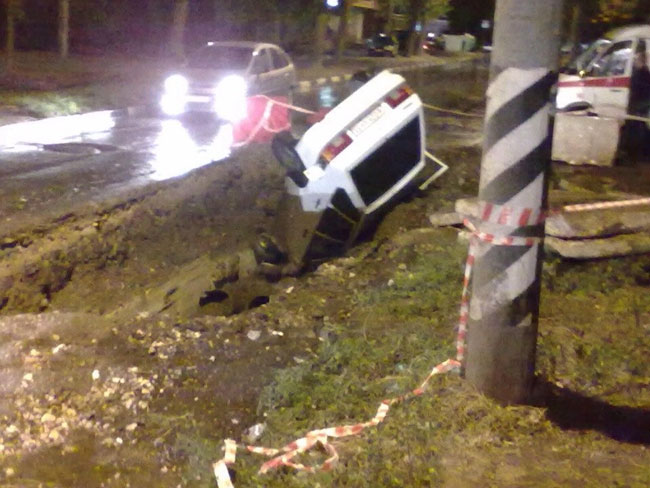 Вчера вечером в Октябрьском районе Саратова автомобиль «ВАЗ-2114» упал в раскопанную яму. Как утверждают очевидцы, водитель снес ограждение на улице Степана Разина и врезался передней частью машины в трубы.
