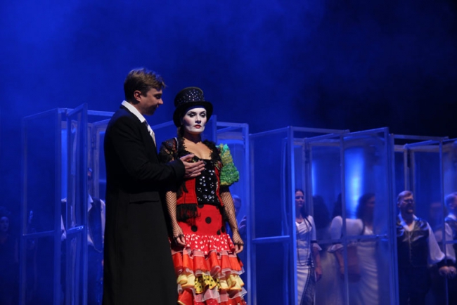 Гастрольную программу открыл спектакль «Куклы». Режиссер Валерий Белякович поставил на сцене историю Пигмалиона. В ней рассказывается, как главный герой создал кукол-актеров, которые оказались практически неотличимыми от живых людей, с их привычками, страстями, пороками. Мастер привозит свой театр на родину в Мадрид и наталкивается на ожесточенное сопротивление. Его земляки боятся, что их заменят искусно изготовленные куклы.
