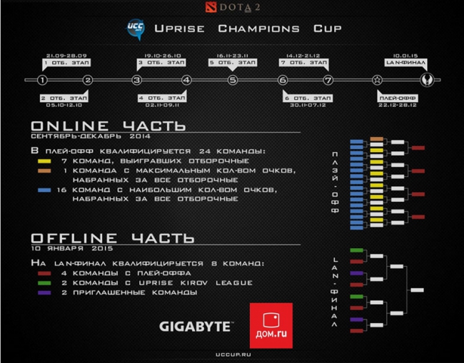 «UCCup 2014 будет новым этапом становления киберспорта в России. Турнир и интернет объединил команды из самых разных уголков нашей страны. Расстояние, каким бы большим оно не было – уже не имеет значение. Команды из Санкт-Петербурга и Владивостока соревнуются, зрители получают новые впечатления и удовольствие от качества трансляции», - пояснили в пресс-службе телеком-оператора «Дом.ru».