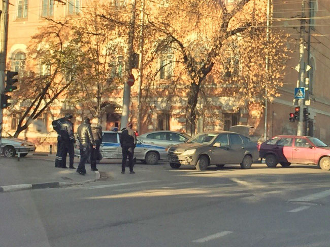 Сегодня утром в Кировском районе Саратова столкнулись «Лада Гранта» и служебный «ВАЗ-2114» полка ДПС. Авария зафиксирована на пересечении улиц Университетская и Кутякова.