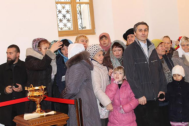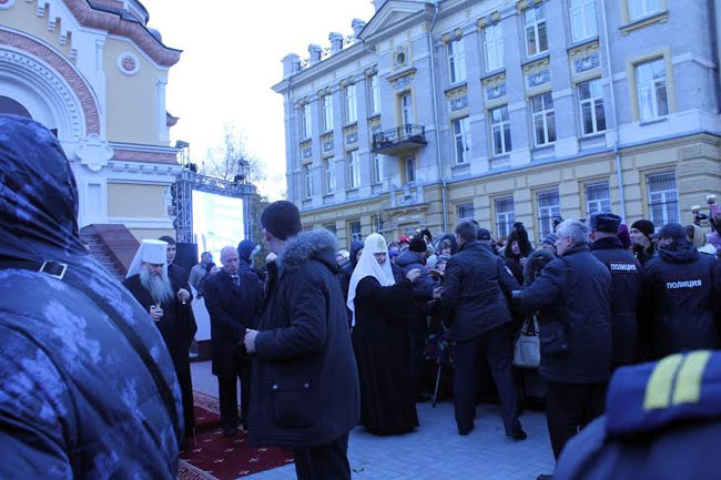 Отметим, что на выходе из храма Патриарха встречало несколько сотен верующих.
