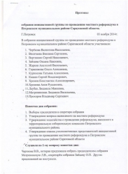Всего подписавшихся под инициативой 13 человек, председателем собрания группы избрана Людмила Матренинская. В тексте говорится о следующем вопросе (орфография и пунктуация сохранены): «Согласны ли Вы с тем, чтобы земельному участку, расположенный в 59 квартале города Петровска по улице Ф.Энгельса между улиц Московская и Советская было присвоено рекреационное назначение Р-3 – статус сквера и выполнено все необходимое для этого благоустройство?».