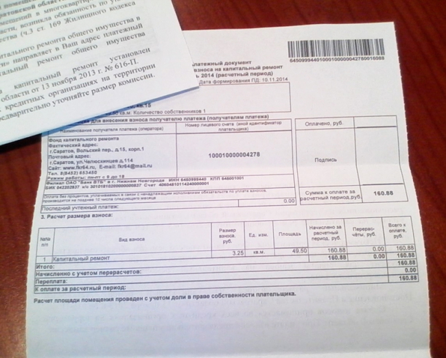 В платежках за капремонт жилья будут штрих-код и логотип оператора